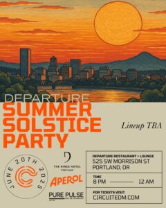 Join CIRCUIT and DEPARTURE on Friday, June 27th as we launch our rooftop summer series in style. Set against the stunning skyline of downtown Portland, this 21+ event runs from 8 PM to midnight, with doors opening at 7:45 PM, at the iconic Departure Restaurant + Lounge. We can’t wait to celebrate with you soon!